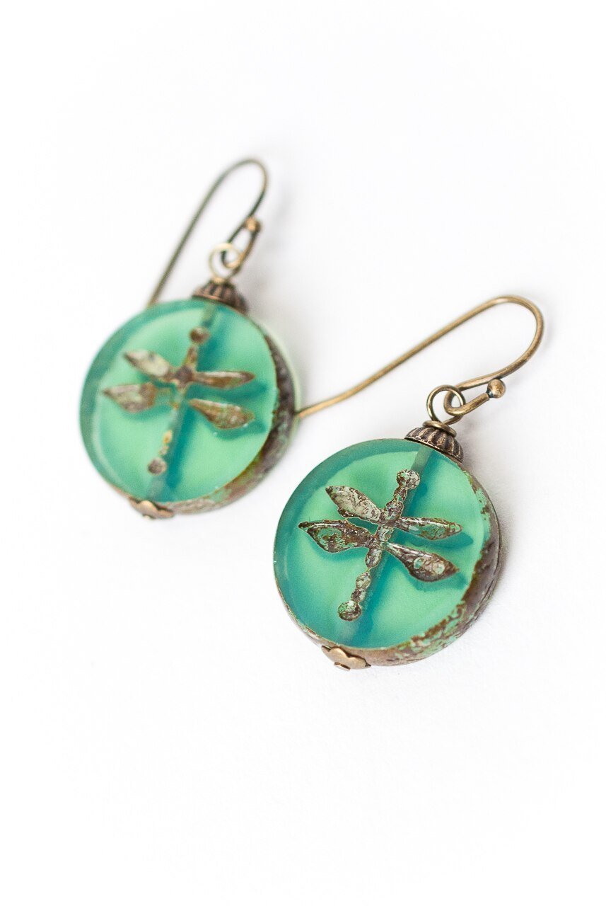 A symbol of change and transformation, these handmade dragonfly earrings are created with Czech glass.