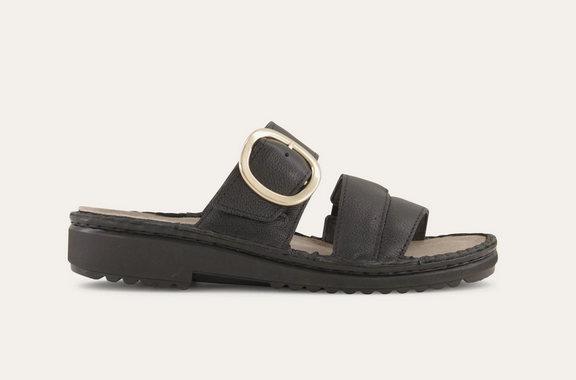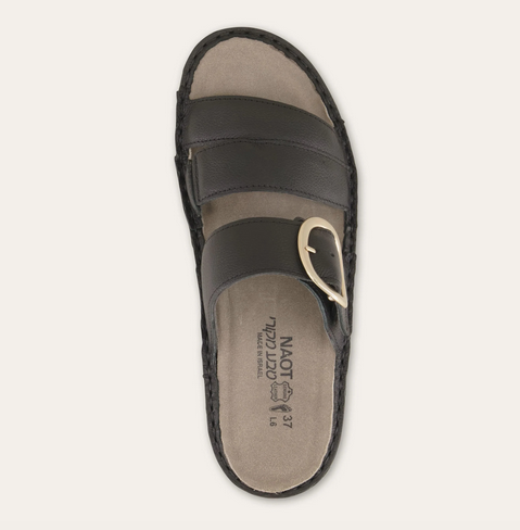Frey is a stylish slip-on sandal with a buckle accent featuring our removable footbed for comfort. Naot’s removable, anatomic cork & latex footbed is wrapped in pampering suede and molds to the shape of the foot with wear. The Low Scandinavian Collection features a 1.25″ polyurethane sole which is extremely lightweight and durable. American Podiatric Medical Association (APMA) Accepted for promoting good foot health. Our patented Naot Replacement Footbeds are also available for Frey.